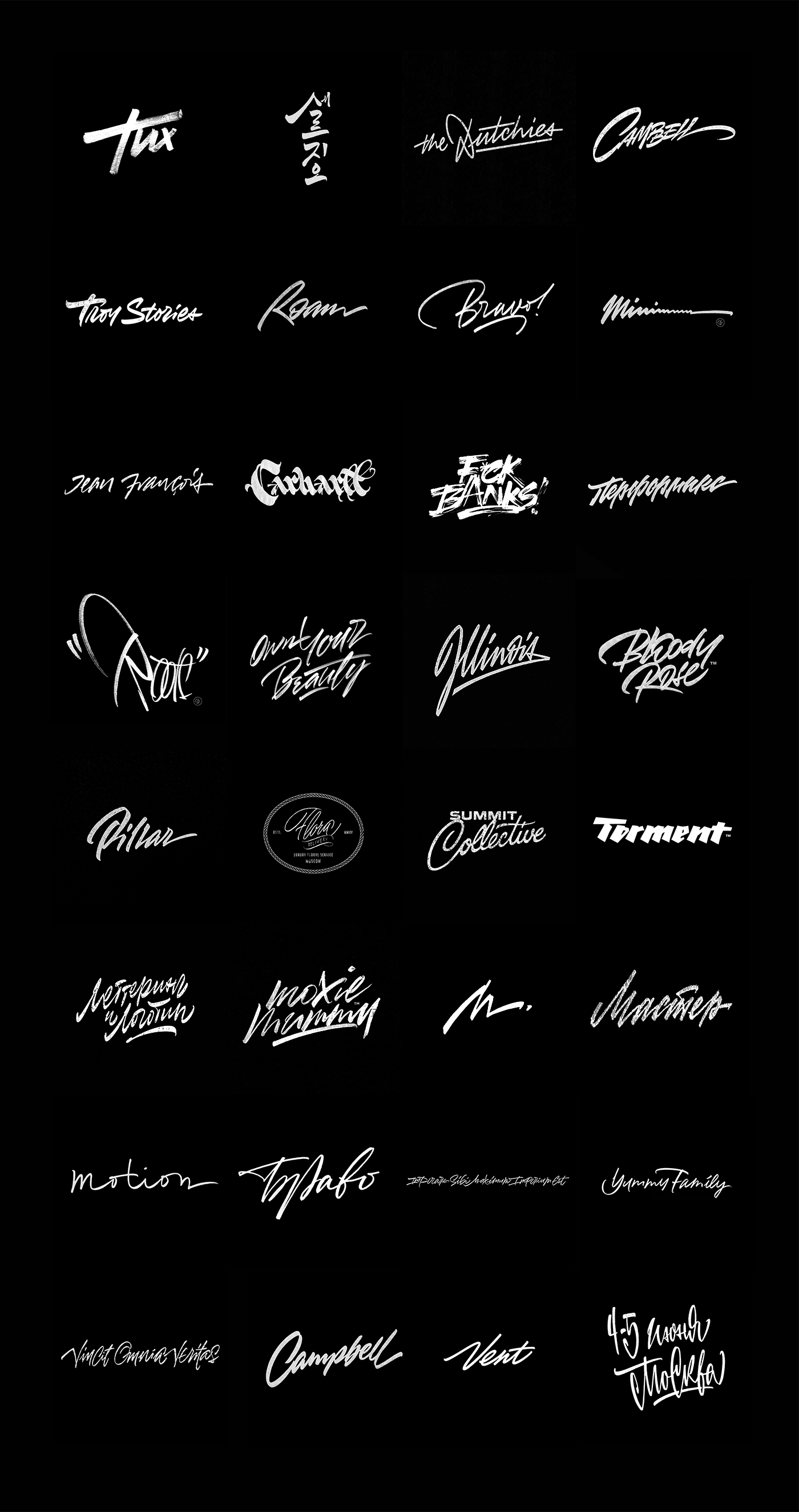 Here's a small bunch of different lettering and hand-written sketches made during working on various projects, commercial and personal. I made this compilation to illustrate part of my process and variety of styles I try to work through. I try not to copy myself but it's a bit difficult because most of my clients reference me to my previous works, so I always try to add some minor details, strokes etc. those make every work original and unique, at list this is my goal when the task allows to do that. All these drafts are quite rough in comparison with final results.