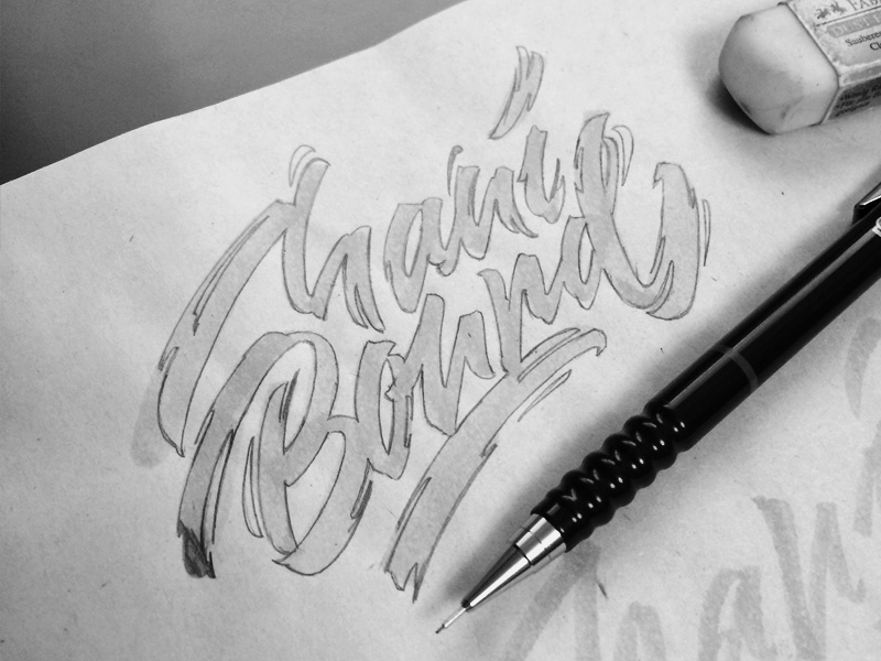 Brush-pen writing based sketch of a t-shirt artwork for Maui Bound.